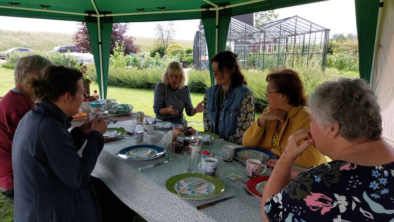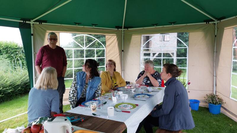 Toch super gezellig met zijn 10'en. Even vergeten om eerst het lekkers vooraf te fotograferen, de appels bleven over, de aardbeien waren zo lekker dat ze op waren voordat we het wisten :)