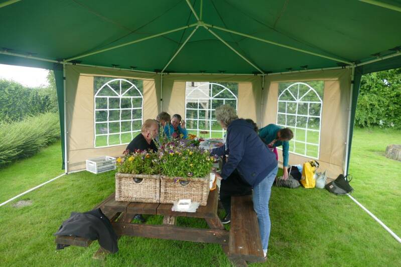 2 foto's van de voorbereiding, daarna de gezelligheid. Beide dagen was er tomaten-groentensoep met zelfgebakken brood.