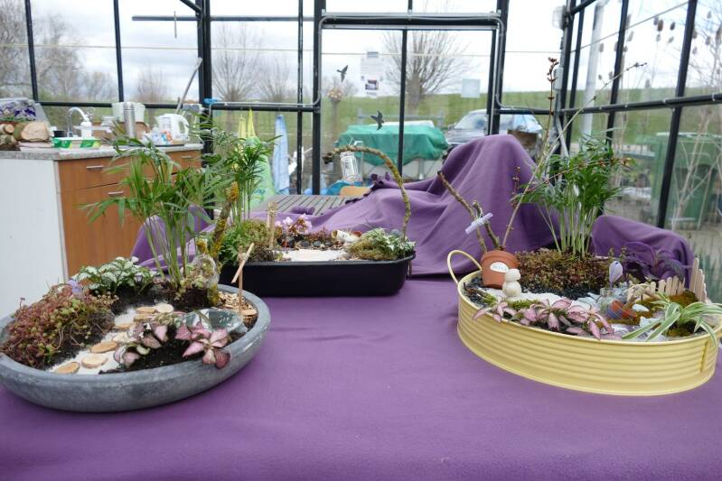 Er worden 2 mooie haiku's gemaakt en voorgelezen. Nellekes stuk wordt ook met plantjes aangevuld.