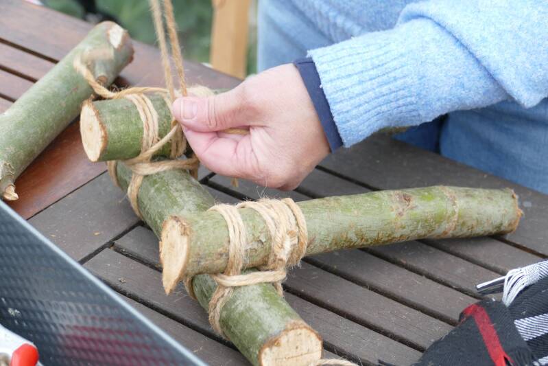 De eerste workshop was op zaterdag 5 april en vol met 6 volwassen en 2 tieners. Eerst kokos-ananastaart. Instructie en daarna werd er nijver geknoopt, gemeten en meer geknoopt. Vooral met veel plezier gewerkt. In hout gebrand. Ieder eigen tekst. Één werkstuk wordt nog afgemaakt.