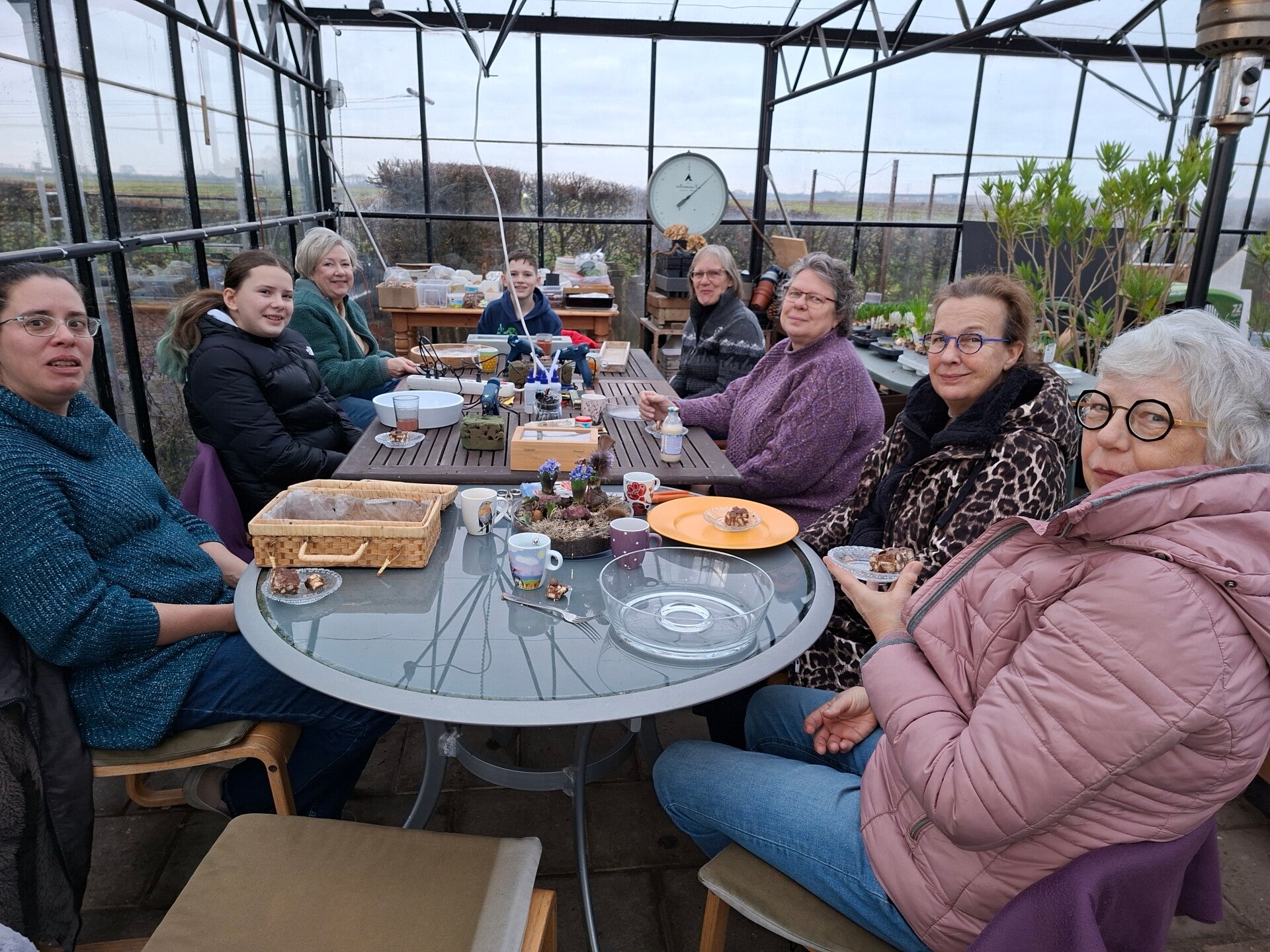 Zaterdag 17 januari: alweer de laatste ochtend, zou nu 't lekkers wel op de foto komen? Deze ochtend 8 deelnemers met een jarige erbij!