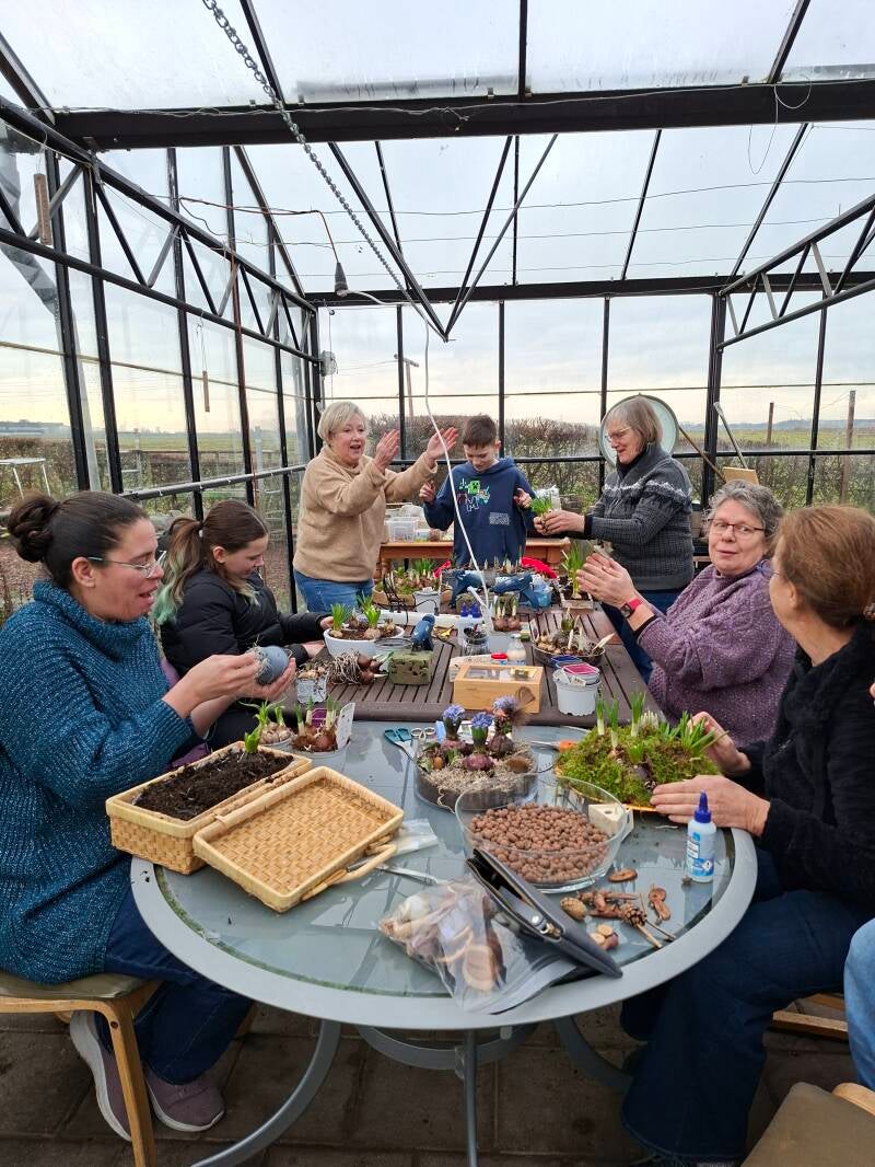 Bekijk hier de foto's van onze lentebolletjes workshops. We zijn woensdag 12 januari aan de slag gegaan met 4 creatieve dames (waarvan 1 met visuele beperking). De zon scheen, het werd gewoon lekker warm in de kas. De creativiteit kwam volop tot bloei. Met lijm en herfstmateriaal werden kekke vogeltjes gemaakt, met brushpennen werden huisjes en bloemen gekleurd en zelfs kunstbladen werden gebruikt.